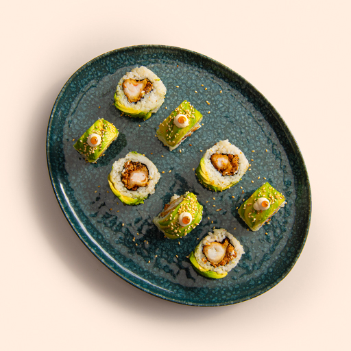 LANGOSTINO REBOZADO, QUESO, ESPÁRRAGO, AGUACATE, MAYONESA Y SALSA TERIYAKI