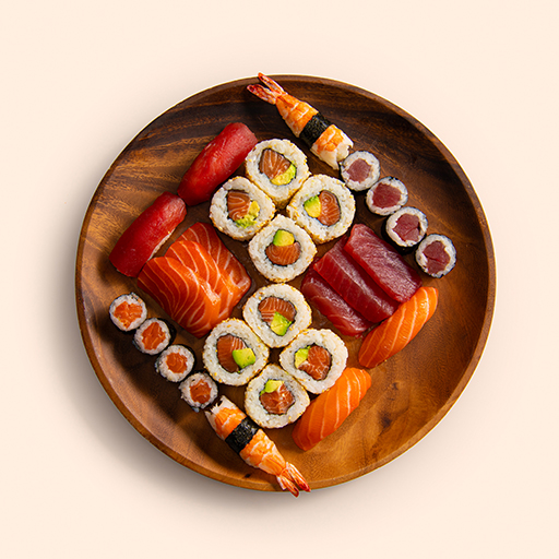 8 URA 3 SASHIMI 2 NIGIRI ATÚN, 4 MAKI SALMÓN 3 SASHIMI, 2 NIGIRI GAMBAS 4 MAKI ATÚN, 2 NIGIRI SALMÓN