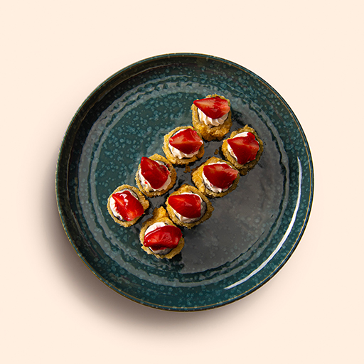 MAKI FRITO CON FRESA Y NATA, RELLENO DE ATÚN.